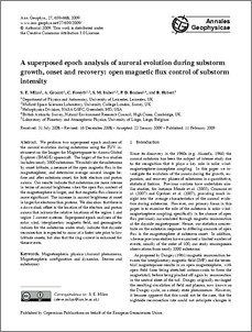 Milan, S.E.; Grocott, A.; Forsyth, C.; Imber, S.M.; Boakes, P.D.; Hubert, B.. 2009 A superposed epoch analysis of auroral evolution during substorm growth, onset and recovery: open magnetic flux control of substorm intensity. Annales Geophysicae, 27 (2). 659-668. 10.5194/angeo-27-659-2009