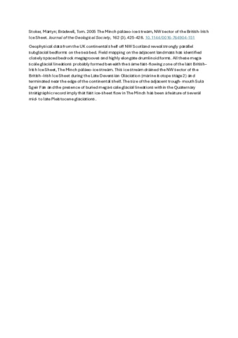 Stoker, Martyn; Bradwell, Tom. 2005 The Minch palaeo-ice stream, NW sector of the British-Irish Ice Sheet. Journal of the Geological Society, 162 (3). 425-428. 10.1144/0016-764904-151