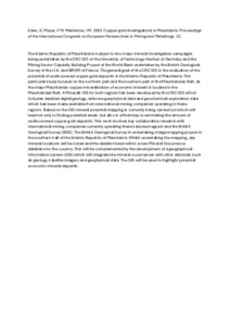 The Islamic Republic of Mauritania is subject to two major mineral investigation campaigns being undertaken by the CRC 525 of the University of Technology Aachen of Germany and the Mining Sector Capacity Building Project of the World Bank undertaken by the British Geological Survey of the U.K. and BRGM of France. The general goal of the CRC 525 is the evaluation of the potential of undiscovered copper-gold deposits in the Islamic Republic of Mauritania. This particular study focuses on the northern part and the southern part of the Mauritanides Belt, as the major Mauritanian copper mineralisation of economic interest is located in the Mauritanides Belt. A Minerals GIS for both regions has been developed by the CRC 525 which includes detailed digital geology, airborne geophysical data and geochemical exploration data which has been made available from international mining companies operating in these regions. Based on the GIS mineral potential mapping is currently being carried out which will lead not only to finding potential areas, but also in a final step to estimating the amount of undiscovered copper-gold deposits. This work involves key collaborative research with international mining companies currently operating these selected regions and the British Geological Survey (BGS). The British Geological Survey is undertaking a large mapping project in the southern half of the Islamic Republic of Mauritania. Whilst undertaking the mapping, any mineral locations will be noted and the details stored within a new Mineral Occurrence database for the country. This will be complemented by the development of a geographical information system (GIS) which will integrate the mineral occurrences with other data sets such as geology, satellite imagery and geophysical data. The GIS will be used to highlight potential economic mineral deposits.