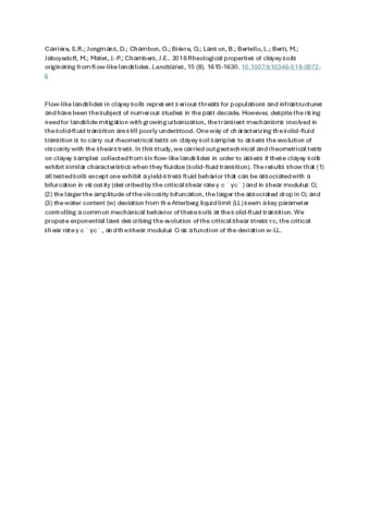Carrière, S.R.; Jongmans, D.; Chambon, G.; Bièvre, G.; Lanson, B.; Bertello, L.; Berti, M.; Jaboyedoff, M.; Malet, J.-P.; Chambers, J.E.. 2018 Rheological properties of clayey soils originating from flow-like landslides. Landslides, 15 (8). 1615-1630. 10.1007/s10346-018-0972-6