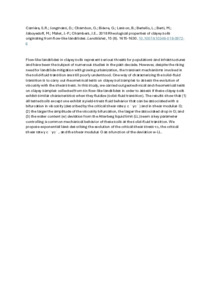 ) and in shear modulus G; (2) the larger the amplitude of the viscosity bifurcation, the larger the associated drop in G; and (3) the water content (w) deviation from the Atterberg liquid limit (LL) seem a key parameter controlling a common mechanical behavior of these soils at the solid-fluid transition. We propose exponential laws describing the evolution of the critical shear stress τc, the critical shear rate γ c ˙