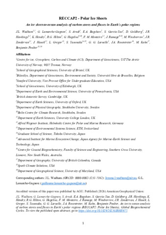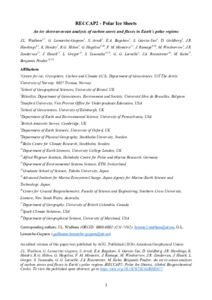 The polar ice sheets, their surrounding land fringes and oceans (68 × 106 km2; 13% of Earth's surface) are hot spots for carbon cycle perturbation under future climate change due to glacier retreat, rising meltwater fluxes, reduced sea ice, thawing permafrost, warming land-surfaces and increased precipitation. Here we assess carbon stored and exchanged with the atmosphere (as carbon dioxide and methane) across an expansive bipolar ice-to-ocean domain. We show that the polar regions harbor large reserves of carbon stored in sediments, rocks and the ocean, which differ in their reactivity and turnover times: 5,300–22,200 PgC of organic carbon and 5,600–8,600 PgC of inorganic carbon. These carbon reservoirs include potential reserves of marine and subglacial methane hydrate (80–570 PgC), which could become destabilized under future warming scenarios. Oceans (270–360 PgC) and ice sheets (14–96 PgC Greenland, 5,000–21,000 PgC Antarctica) dominate organic carbon stores, with smaller (but regionally important) stocks found in ice sheet land fringes (13–58 PgC). Estimates of natural CO2 and CH4 fluxes from these polar regions to the atmosphere present high uncertainty but highlight oceanic CO2 sinks in Greenland (−110 to −49 TgC-CO2 a−1) and in the ICE and SPSS biomes of the Southern Ocean (−480 to 55 TgC-CO2 a−1), with potential CH4 sources associated with the Greenland Ice Sheet. Such high uncertainty in polar carbon reservoirs and fluxes is important to resolve if future feedbacks between the polar regions, Earth's carbon cycle and climate are to be conclusively determined.