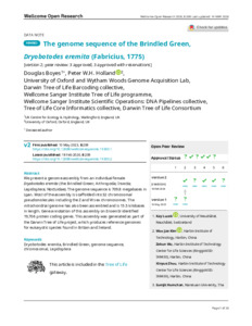 We present a genome assembly from an individual female Dryobotodes eremita (the Brindled Green; Arthropoda; Insecta; Lepidoptera; Noctuidae). The genome sequence is 709.8 megabases in span. Most of the assembly is scaffolded into 32 chromosomal pseudomolecules including the Z and W sex chromosomes. The mitochondrial genome has also been assembled and is 15.5 kilobases in length. Gene annotation of this assembly on Ensembl identified 19,706 protein coding genes. This assembly was generated as part of the Darwin Tree of Life project, which produces reference genomes for eukaryotic species found in Britain and Ireland.