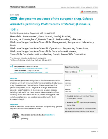 Additional Keywords: | Gulosus aristotelis, Phalacrocorax aristotelis, European shag, genome sequence, chromosomal, Pelecaniformes |