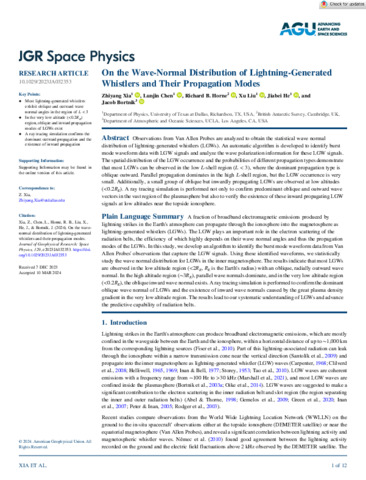© 2024. American Geophysical Union. All Rights Reserved. JGR Space Physics - 2024 - Xia - On the Wave‐Normal Distribution of Lightning‐Generated Whistlers and Their Propagation.pdf - Published Version Download (2MB) | Preview |