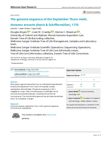 | Additional Keywords: | Ennomos erosaria, September thorn moth, genome sequence, chromosomal, Lepidoptera |