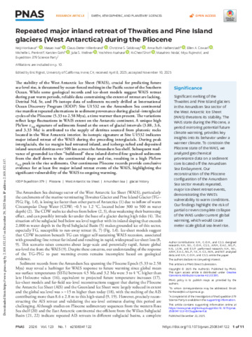 Repeated major inland retreat of Thwaites and Pine Island glaciers (West Antarctica) during the Pliocene.