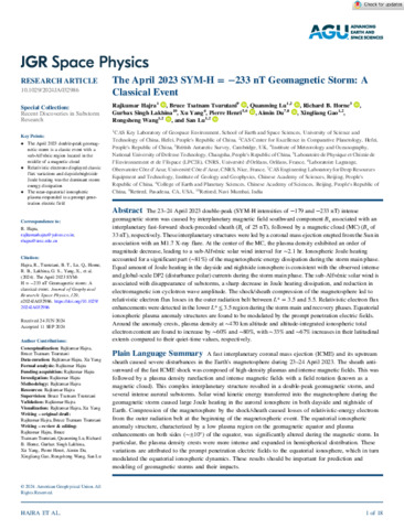 © 2024. American Geophysical Union. All Rights Reserved. JGR Space Physics - 2024 - Hajra - The April 2023 SYM‐H 233 nT Geomagnetic Storm A Classical Event.pdf - Published Version Download (3MB) | Preview |
