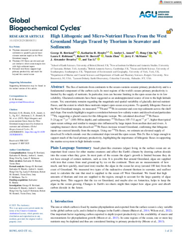 © 2025. The Author(s). Global Biogeochemical Cycles - 2025 - Rowland - High Lithogenic and Micro‐Nutrient Fluxes From the West Greenland Margin.pdf - Published Version Available under License Creative Commons Attribution 4.0. Download (1MB) | Preview |