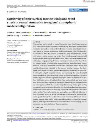 Sensitivity of near-surface marine winds and wind stress in coastal Antarctica to regional atmospheric model configuration.