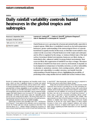 Daily rainfall variability controls humid heatwaves in the global tropics and subtropics.