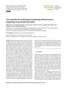 User priorities for hydrological monitoring infrastructures supporting research and innovation.