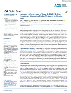 Laboratory measurement of sonic (1–20 kHz) P‐wave velocity and attenuation during melting of ice‐bearing sand.
