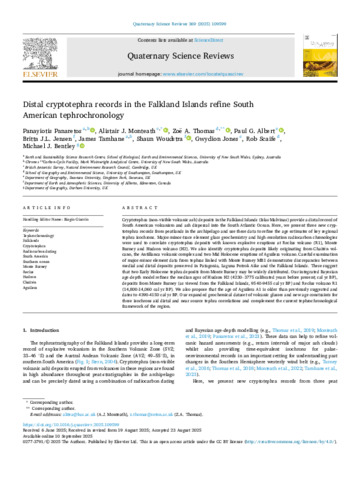 Distal cryptotephra records in the Falkland Islands refine South American tephrochronology.