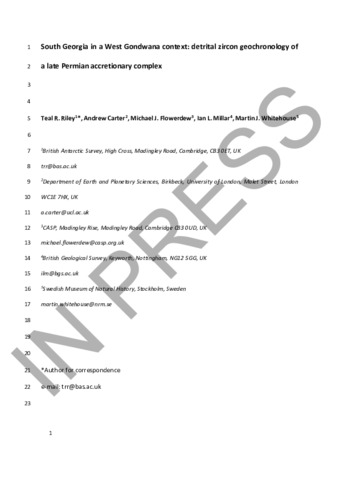 South Georgia in a West Gondwana context: detrital zircon geochronology of a late Permian accretionary complex.