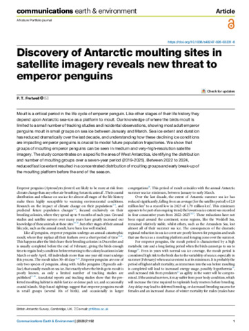 Discovery of Antarctic moulting sites in satellite imagery reveals new threat to emperor penguins.