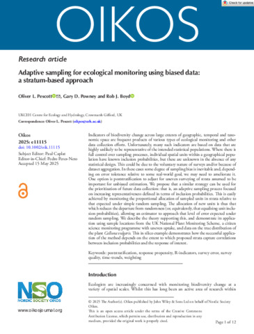 Adaptive sampling for ecological monitoring using biased data: a stratum‐based approach.
