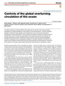 The global overturning circulation (GOC) is the largest scale component of the ocean circulation, associated with a global redistribution of key tracers such as heat and carbon. The GOC generates decadal to millennial climate variability, and will determine much of the long-term response to anthropogenic climate perturbations. This review aims at providing an overview of the main controls of the GOC. By controls, we mean processes affecting the overturning structure and variability. We distinguish three main controls: mechanical mixing, convection, and wind pumping. Geography provides an additional control on geological timescales. An important emphasis of this review is to present how the different controls interact with each other to produce an overturning flow, making this review relevant to the study of past, present and future climates as well as to exoplanets’ oceans.