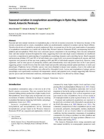 Seasonal variation in zooplankton assemblages in Ryder Bay, Adelaide Island, Antarctic Peninsula.