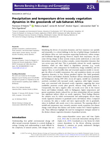 Precipitation and temperature drive woody vegetation dynamics in the grasslands of sub-Saharan Africa.