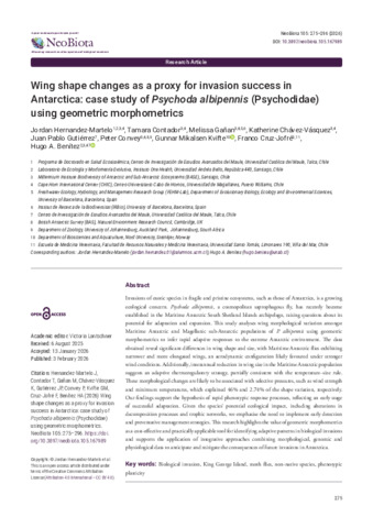 Wing shape changes as a proxy for invasion success in Antarctica: case study of Psychoda albipennis (Psychodidae) using geometric morphometrics.