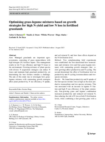 Optimising grass-legume mixtures based on growth strategies for high N-yield and low N loss in fertilised grasslands.