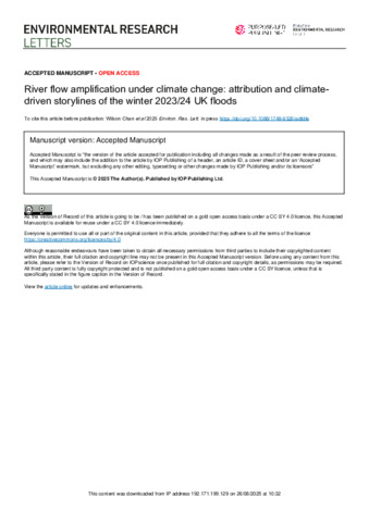 River flow amplification under climate change: attribution and climate-driven storylines of the winter 2023/24 UK floods.