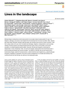 Ditches (linear constructions which store and/or move water where humans prefer it to go), via irrigation, drainage, and power, have helped drive the development of human societies. Now, ditches and other linear channels, typically carrying water, are numerous and found on every continent. Their form varies widely with use, which includes land drainage, irrigation, transportation, and boundary marking. Ditches support and shape biogeochemical cycles, biotic communities, and human societies, at multiple spatiotemporal scales. However, ditches are frequently overlooked by researchers in many disciplines. Here, we review the largely unrecognized role that ditches play in environmental processes and human societies. The effects of ditches can be both positive (e.g., biodiversity refuges, water for food production, nutrient retention) and negative (e.g., greenhouse gas emissions, dispersal of pollutants). We call for future management to consider and enhance the multifunctional role that ditches can deliver at the landscape-scale.
