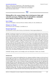 Mekong River dry season changes due to hydropower dams and extractive processes: Making sense of contradictory community observations in Thailand, Laos and Cambodia.