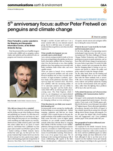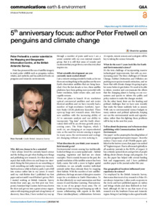 The editors of Communications Earth & Environment. 2025 5th anniversary focus: author Peter Fretwell on penguins and climate change. Communications Earth & Environment, 6 (1). 10.1038/s43247-025-02752-w