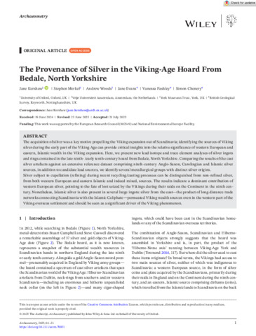 Archaeometry - 2025 - Kershaw - The Provenance of Silver in the Viking‐Age Hoard From Bedale North Yorkshire-1.pdf - Published Version Available under License Creative Commons Attribution 4.0. Download (3MB) | Preview |