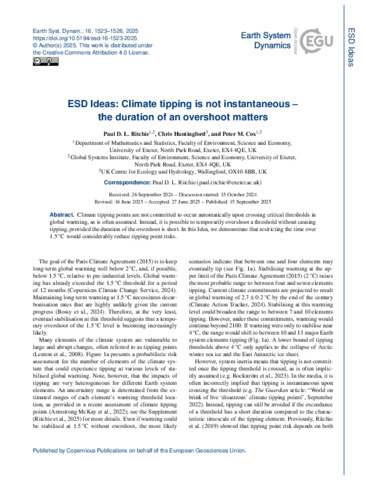 ESD Ideas: climate tipping is not instantaneous – the duration of an overshoot matters.