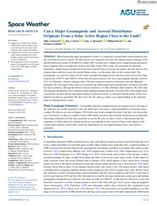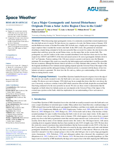 Space Weather - 2025 - Lockwood - Can a Major Geomagnetic and Auroral Disturbance Originate From a Solar Active Region.pdf - Published Version Available under License Creative Commons Attribution 4.0. Download (4MB) | Preview |