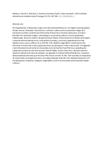 Waldron, John W.F.; DuFrane, S. Andrew; Schofield, David I.; Barr, Sandra M.. 2025 Is Britain divided by an Acadian suture? Geology, 53 (10). 847-852. 10.1130/G53431.1