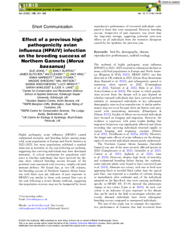 Effect of a previous high pathogenicity avian influenza (HPAIV) infection on the breeding success of northern gannets (Morus bassanus).