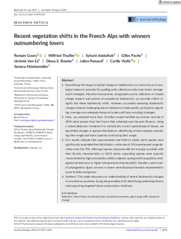 Recent vegetation shifts in the French Alps with winners outnumbering losers.