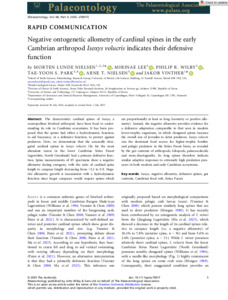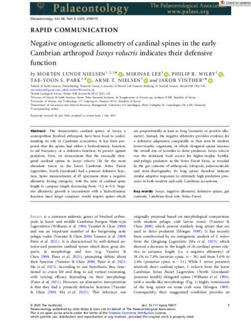Palaeontology - 2025 - Nielsen - Negative ontogenetic allometry of cardinal spines in the early Cambrian arthropod Isoxys.pdf - Published Version Available under License Creative Commons Attribution 4.0. Download (6MB) | Preview |