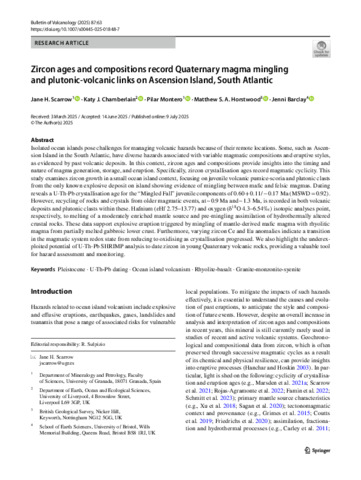 Zircon ages and compositions record Quaternary magma mingling and plutonic-volcanic links on Ascension Island, South Atlantic.