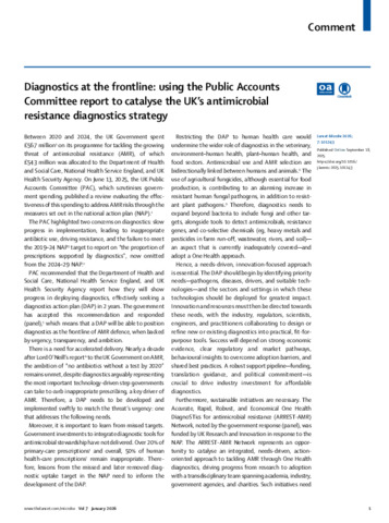 Diagnostics at the frontline: using the Public Accounts Committee report to catalyse the UK’s antimicrobial resistance diagnostics strategy [Comment].