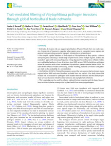 Trait-mediated filtering of Phytophthora pathogen invasions through global horticultural trade networks.