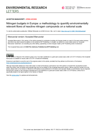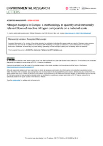 Nitrogen budgets in Europe: a methodology to quantify environmentally relevant flows of reactive nitrogen compounds on a national scale.