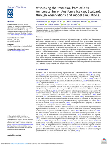 Witnessing the transition from cold to temperate firn on Austfonna ice cap, Svalbard, through observations and model simulations.