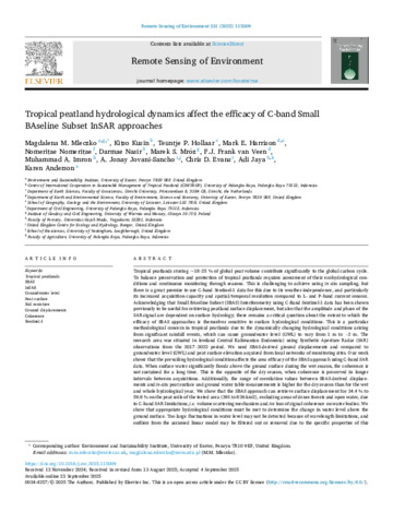 Tropical peatland hydrological dynamics affect the efficacy of C-band Small BAseline Subset InSAR approaches.