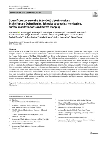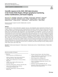 Scientific response to the 2024–2025 dyke intrusions in the Fentale-Dofen Region, Ethiopia: geophysical monitoring, surface manifestations, and hazard mapping.