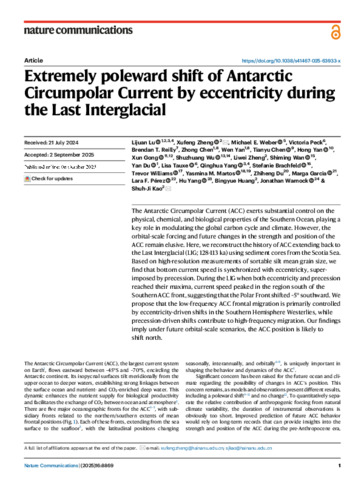 Extremely poleward shift of Antarctic Circumpolar Current by eccentricity during the Last Interglacial.