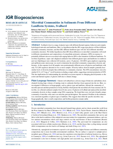 © 2025. The Author(s). JGR Biogeosciences - 2025 - McCerery - Microbial Communities in Sediments From Different Landform Systems Svalbard.pdf - Published Version Available under License Creative Commons Attribution 4.0. Download (2MB) | Preview |