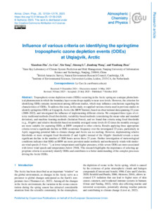 Influence of various criteria on identifying the springtime tropospheric ozone depletion events (ODEs) at Utqiaġvik, Arctic.