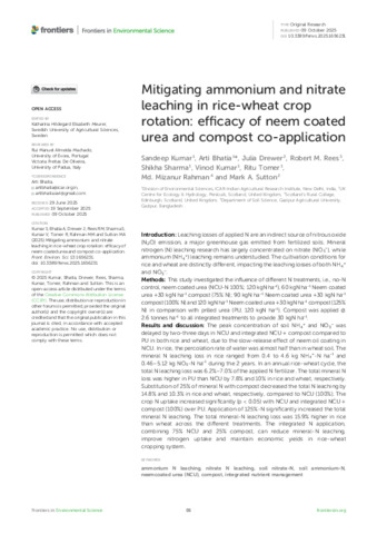 Mitigating ammonium and nitrate leaching in rice-wheat crop rotation: efficacy of neem coated urea and compost co-application.