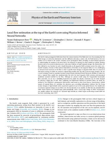 Local flow estimation at the top of the Earth’s core using Physics Informed Neural Networks.