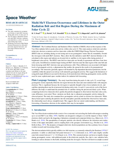 © 2025. The Author(s). Space Weather - 2025 - Desai - Multi‐MeV Electron Occurrence and Lifetimes in the Outer Radiation Belt and Slot Region.pdf - Published Version Available under License Creative Commons Attribution 4.0. Download (3MB) | Preview |